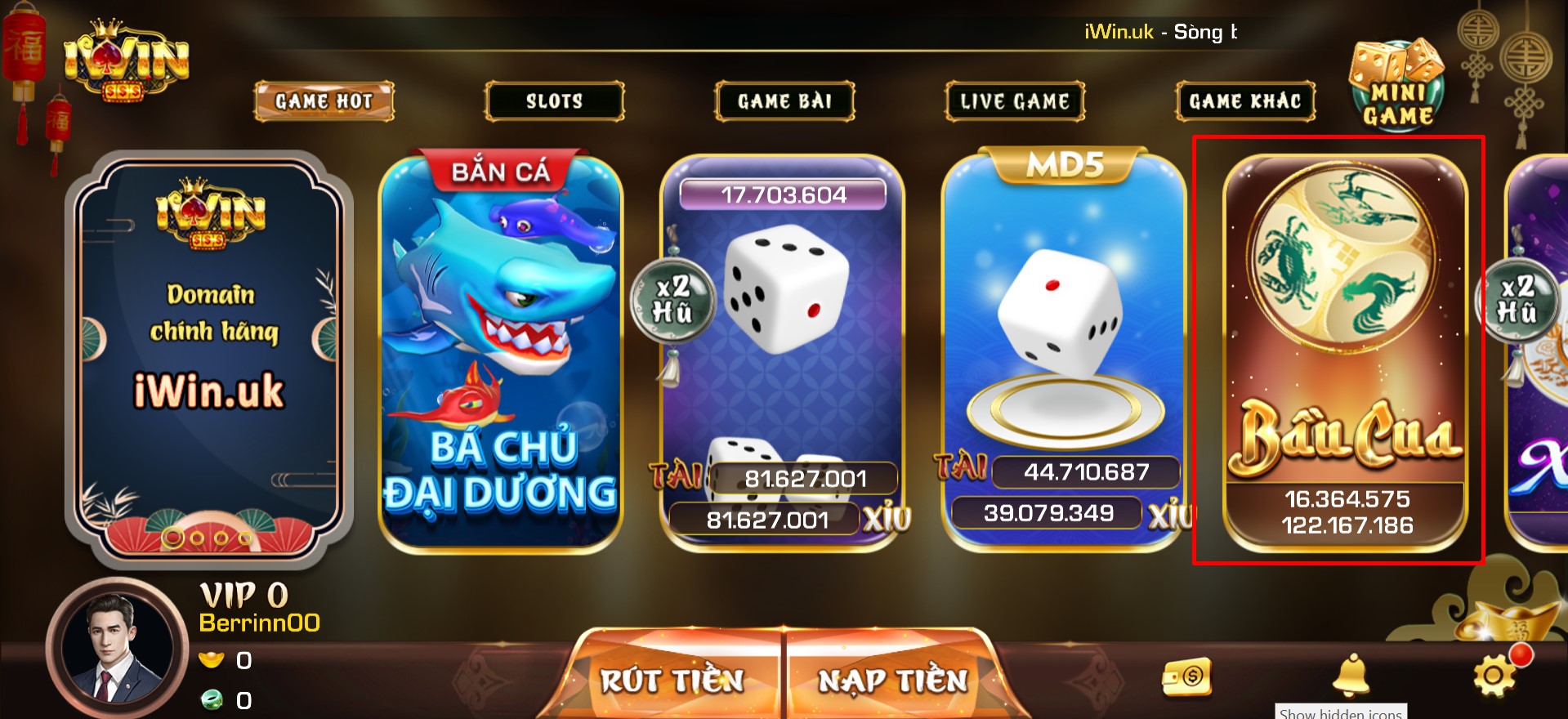 Hấp dẫn sảnh bầu cua iwin được nhiều anh em lựa chọn