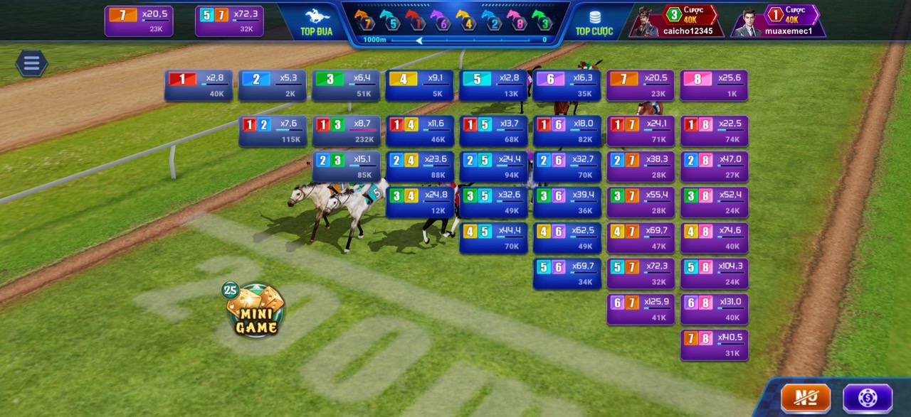 - Cược 2 vị trí: Dự đoán chiến mã sẽ về nhất hoặc nhì.